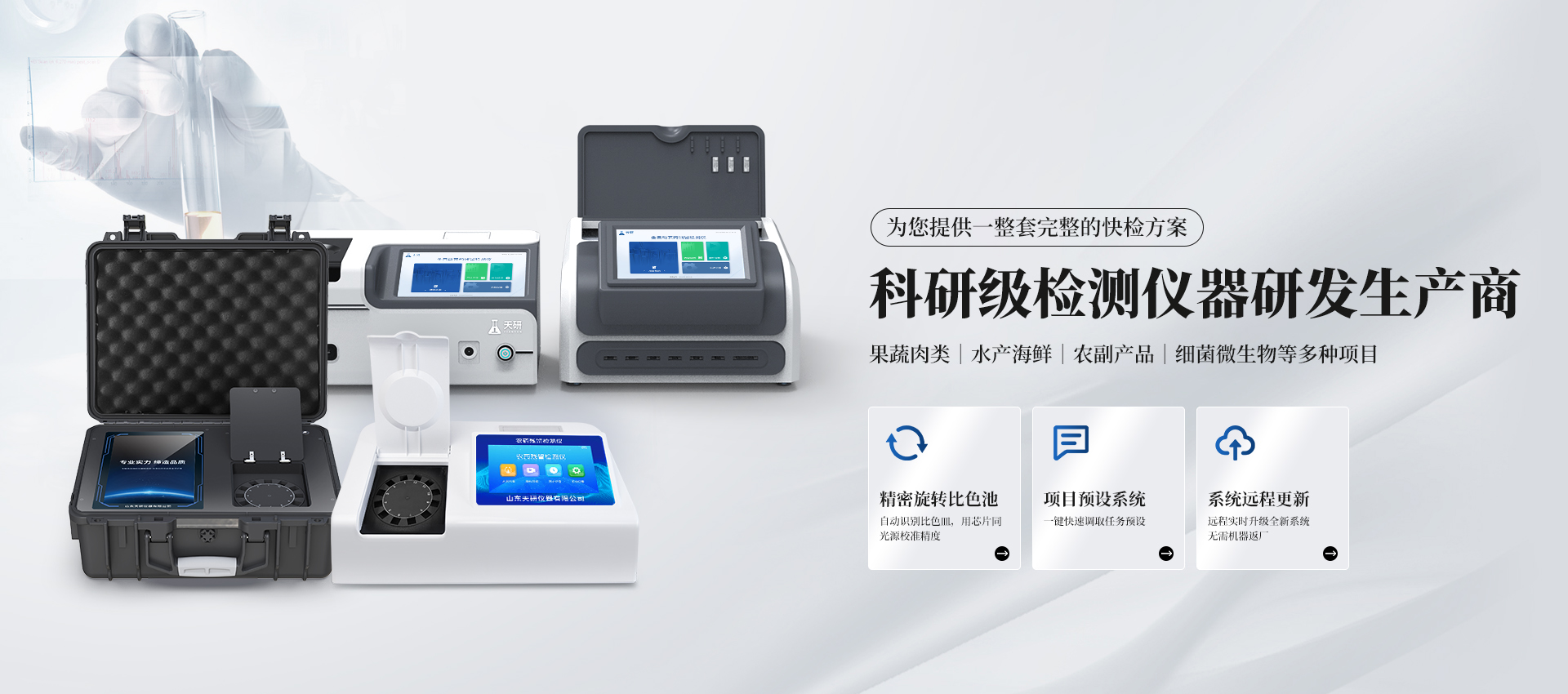 食品安全檢測儀 農藥殘留檢測儀 獸藥殘留檢測儀 細菌微生物檢測儀 食品添加劑檢測儀 食安現場快檢箱 土壤養(yǎng)分檢測儀 植物生理檢測儀 更多